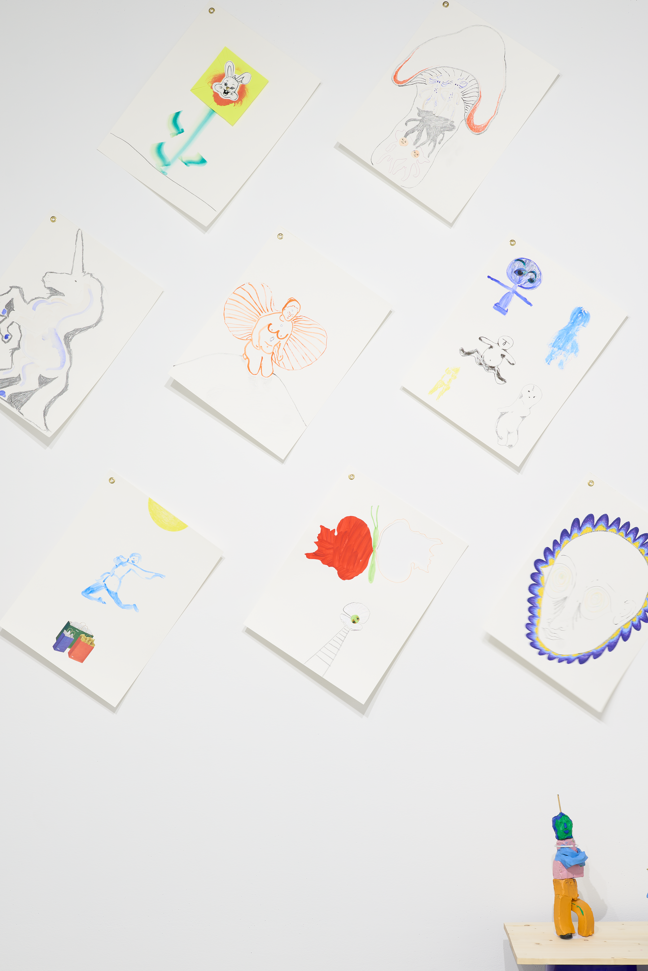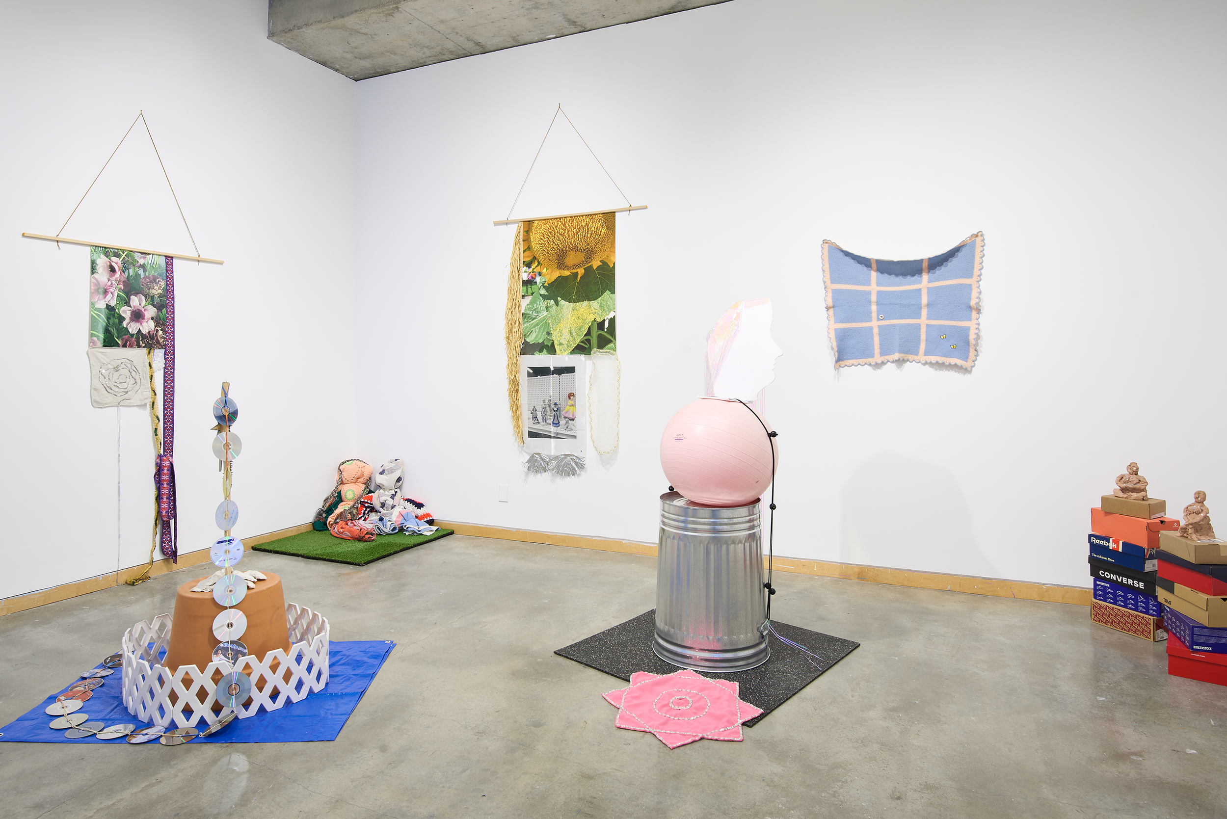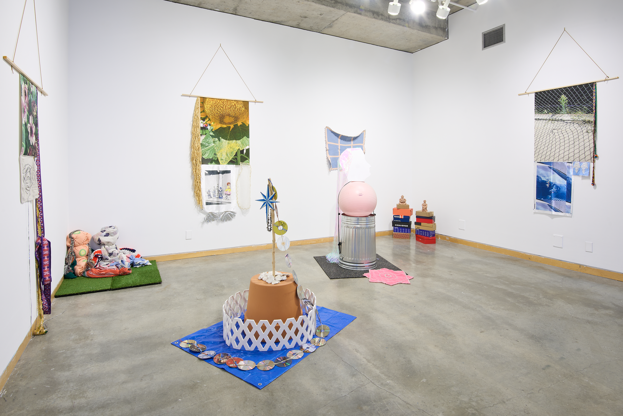 Apperley’s interpretation of the world and aesthetic vision proposes an alternative to our current fraught cultural moment. Fueled by observations of a rapidly changing world, Slug Eggs presents an array of materials and approaches in dialogue with what the artist terms “the torturous inanity of house-flipping grey paint and cyber trucks.” Common consumer and utilitarian items are repurposed and coupled with handmade items to form wall hangings and sculptures that mash up opposing means of production. Some materials, including a cascading assemblage of CDs, suggest a nostalgic longing for technology of the past. Apperley's unexpected combination of materials introduces new meaning and asks the viewer to consider these objects anew, beyond their intended function.