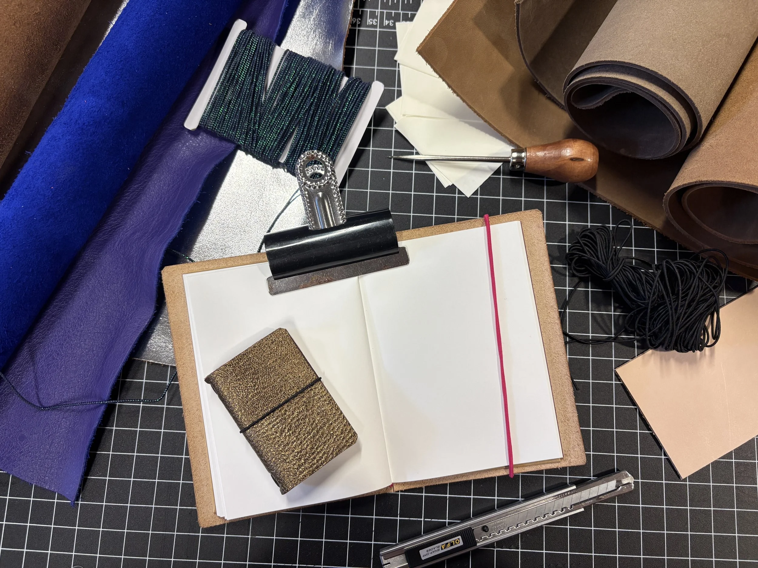 This two-hour introductory workshop will guide participants through creating a reusable leather cover and notebook inserts using simple, no-sew techniques. Customize every aspect — size, type of paper, colour of leather and elastic — to create a notebook that brings you joy every time you pull it out.